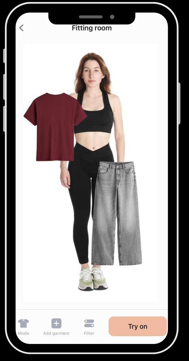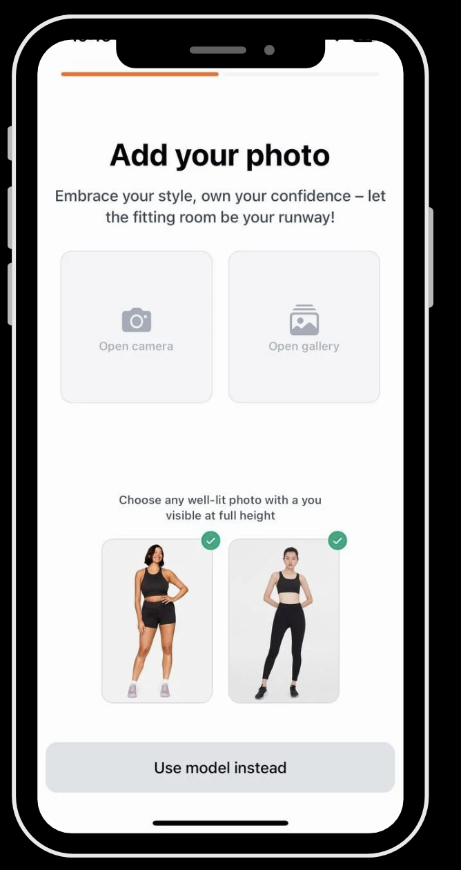 You’ll have access to the clothing uploaded to the app, and also can add photos of the items you want to try on
